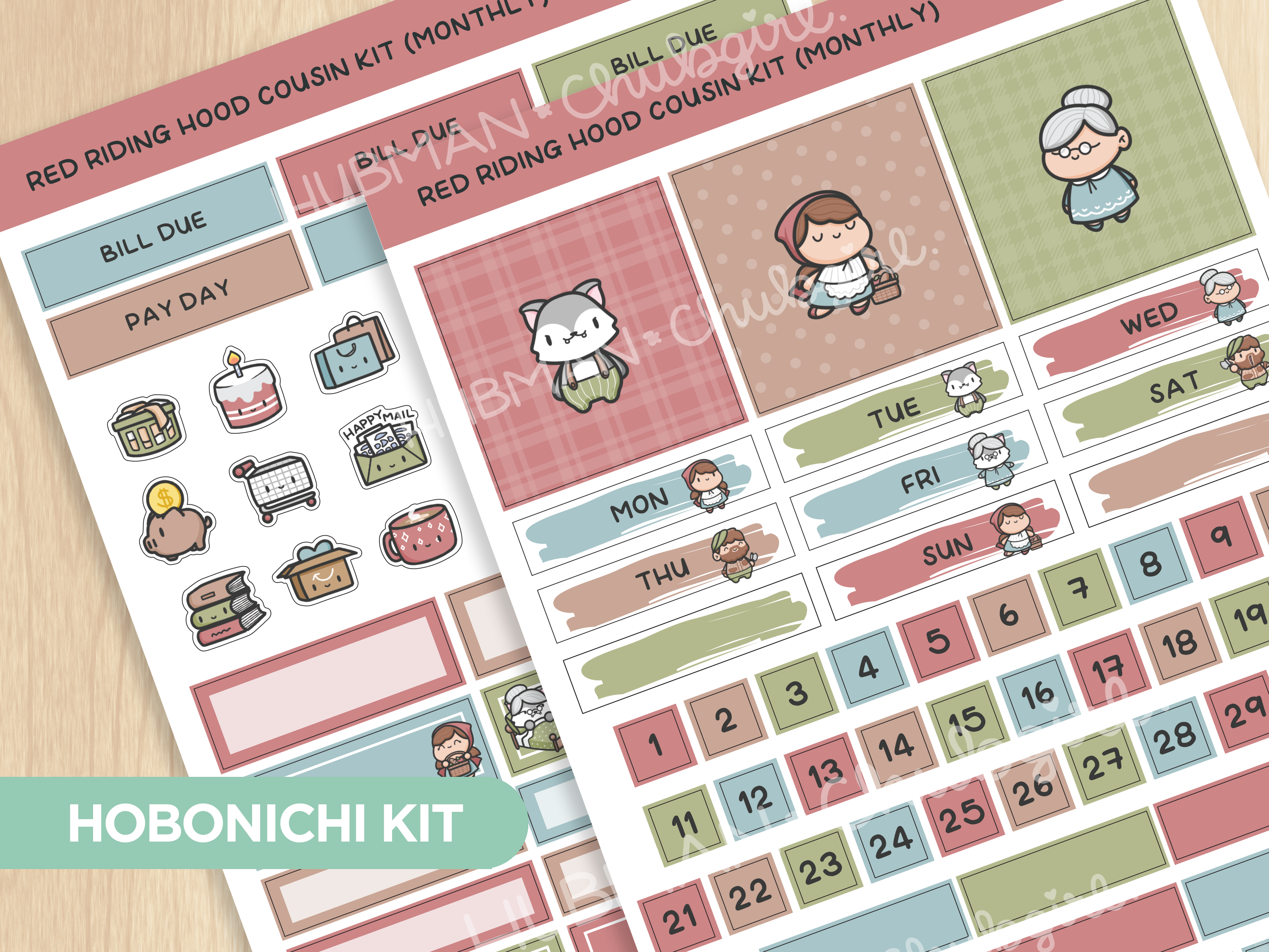 Red Riding Hood Theme Hobonichi Cousin Monthly Kit (Set of 2)