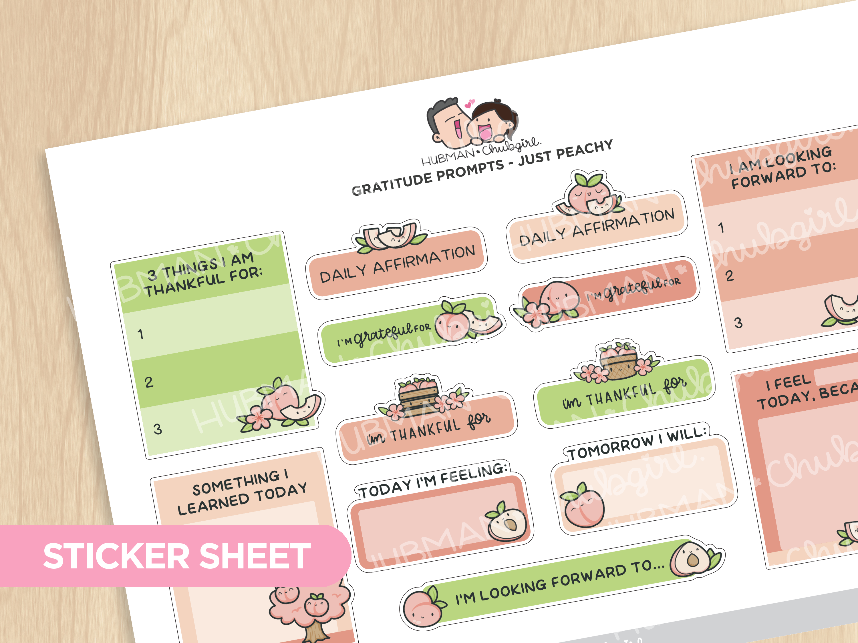 - 1 Sticker Sheet: Gratitude Prompt - Just Peachy theme
