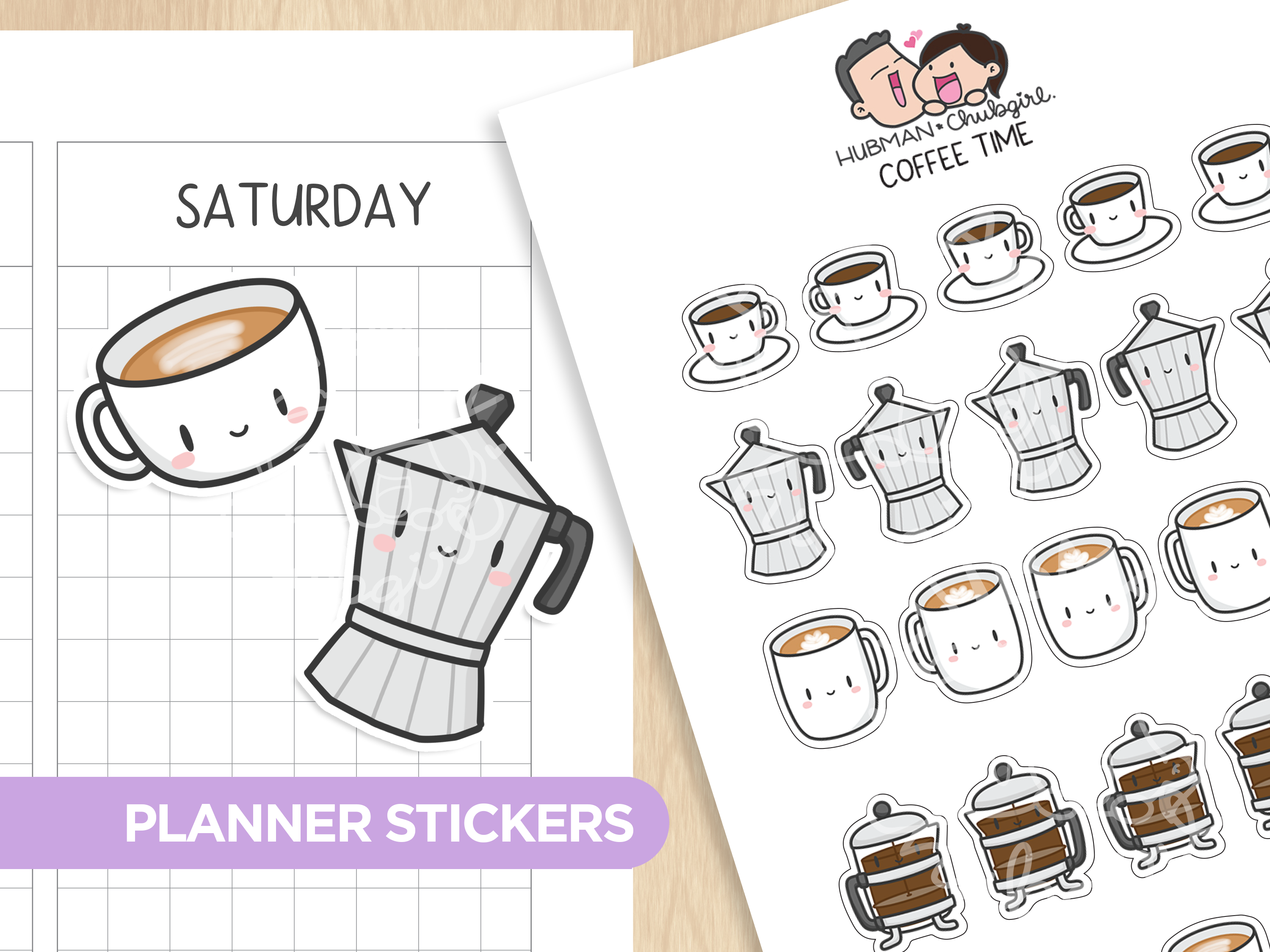 Our products feature cute hand-drawn illustrations by shop owner and in-house artist, Chubgirl.
