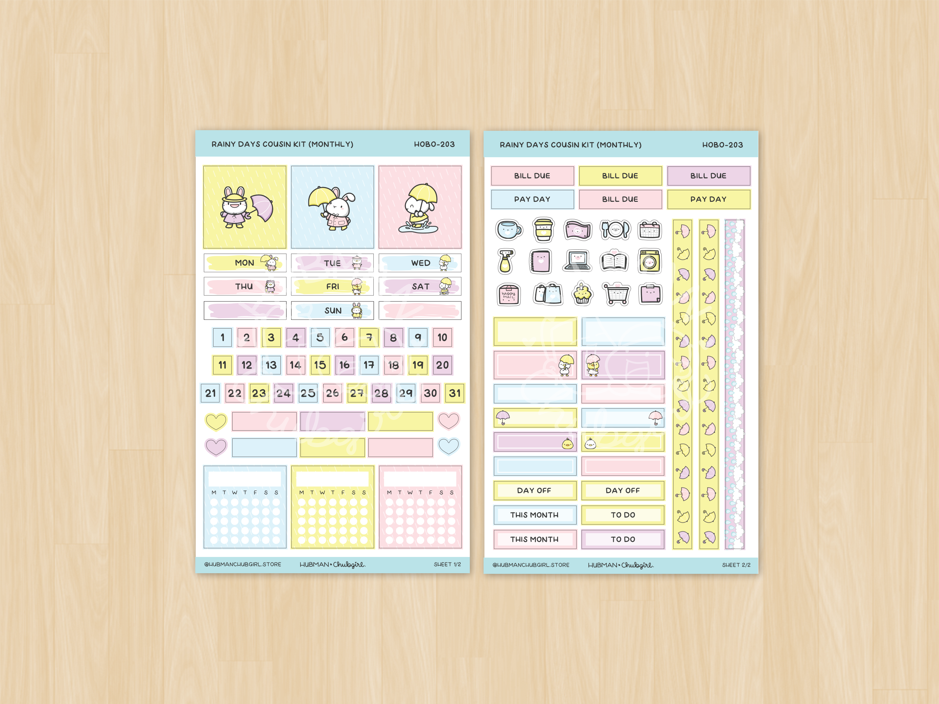 Rainy Days Theme Hobonichi Cousin Monthly Kit (Set of 2)
