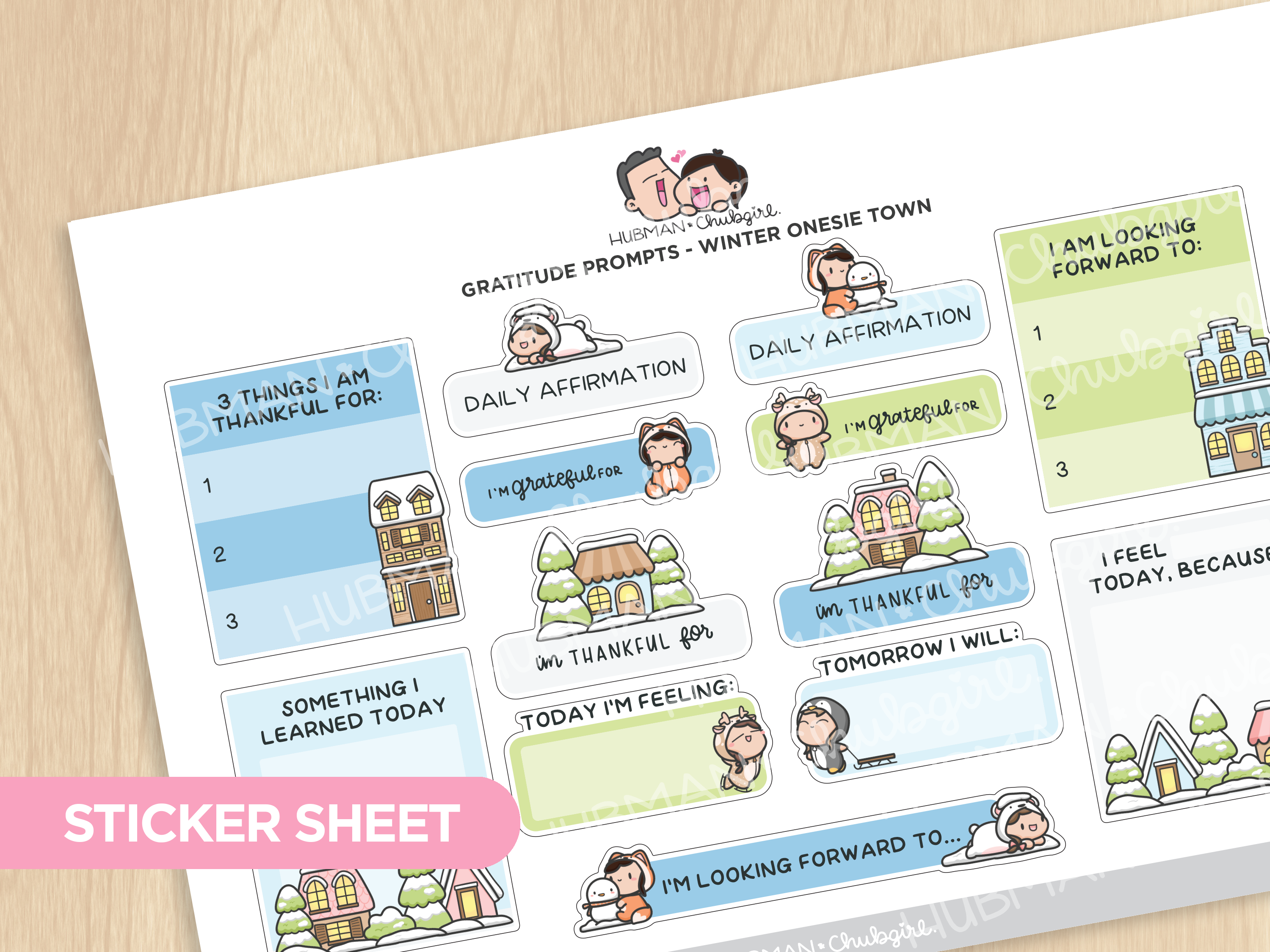 Sticker Sheet - Gratitude Prompts Winter Onesie Town Theme