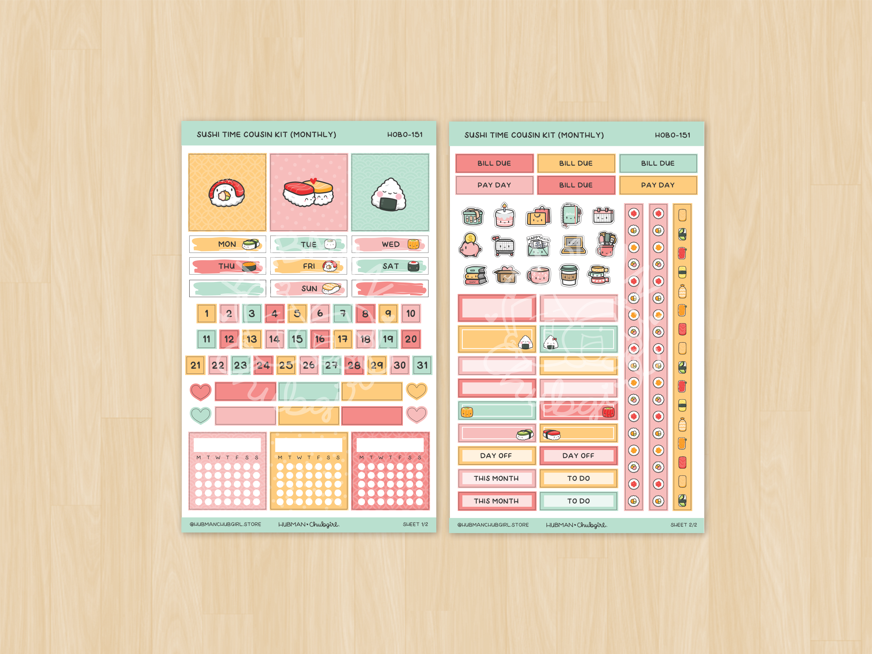 Sushi Time Theme Hobonichi Cousin Monthly Kit (Set of 2)